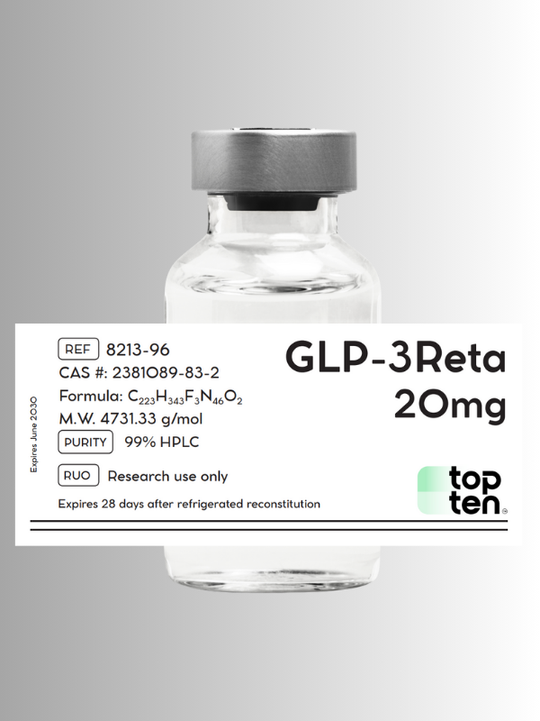 GLP-3R represents the frontier of peptide engineering, known in the scientific community as a "GLP-3" or triple agonist. Unlike traditional mono-agonists (like Semaglutide) or dual-agonists (like Tirzepatide), GLP-3R is designed to activate three distinct receptor pathways:
