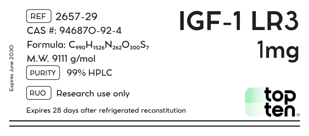 IGF-1 LR3 is FOR RESEARCH USE ONLY. It is not intended for human or veterinary use. This product has not been evaluated by the FDA. Misuse of this product is strictly prohibited and may violate federal, state, or local laws. By purchasing this product, buyer represents and warrants that it will be used only for in vitro research purposes.