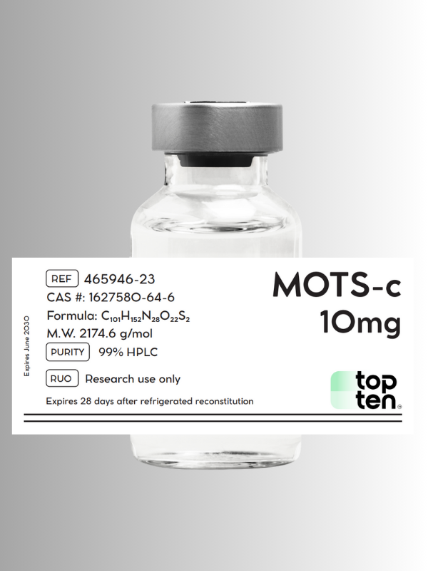 MOTS-c (Mitochondrial Derived Peptide) is a unique, 16-amino acid peptide encoded within the mitochondrial DNA. Often referred to in scientific literature as an “exercise mimetic,” MOTS-c is studied for its ability to regulate metabolic functions and activate AMPK pathways similar to physical exertion. Pepformance provides high-purity (>99%) MOTS-c specifically for research into metabolic homeostasis, weight management, and cellular longevity.