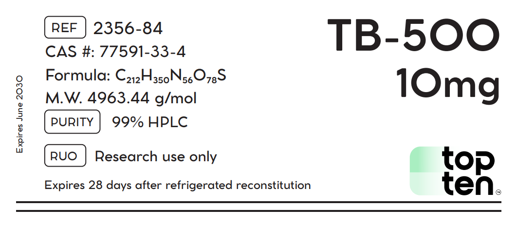 Notice for Researchers: TB-500 is a synthetic laboratory reagent intended solely for scientific research and development. It is not for human or veterinary use. This product is not intended to treat "athletic injuries" or "enhance performance." All experiments should be conducted in vitro or within authorized animal model frameworks by licensed professionals.