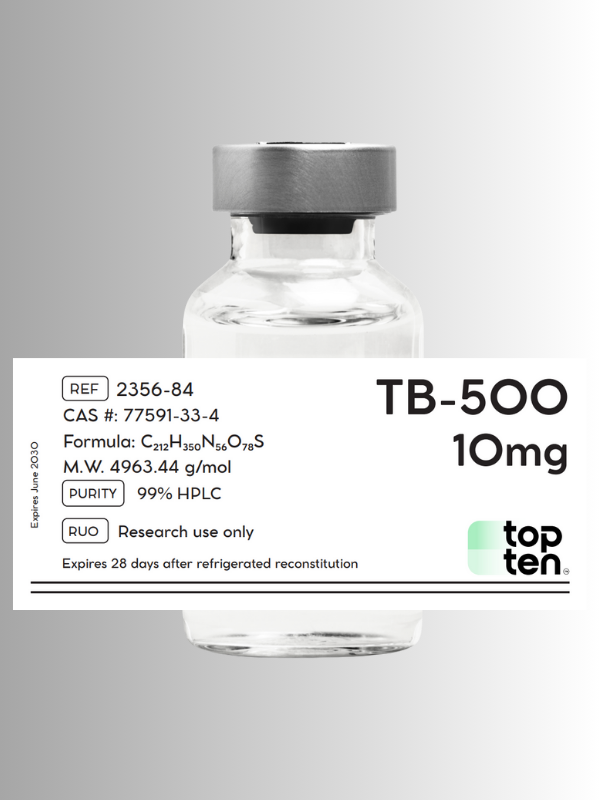 Research suggests TB-500 plays a role in protecting cells, reducing oxidative stress, and promoting regeneration in areas like the heart and central nervous system. Because of these properties, it’s also being explored for its potential in anti-aging and overall wellness applications.TB-500 is a synthetic fraction of the naturally occurring protein Thymosin Beta-4 (Tβ4). While Tβ4 is found in high concentrations in blood platelets and wound fluid, TB-500 is the specific peptide sequence (Ac−Ser−Asp−Lys−Pro−Asp−Met−Ala−Glu−Ile−Glu−Lys−Phe−Asp−Lys−Ser−Lys−Leu−Lys−Lys−Thr−Glu−Thr−Gln−Glu−Lys−Asn−Pro−Leu−Pro−Ser−Lys−Glu−Thr−Ile−Glu−Gln−Glu−Lys−Gln−Ala−Gly−Glu−Ser) that researchers utilize to study localized tissue regeneration and cellular signaling.
